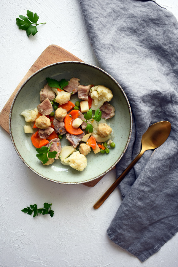 Én is a kedvenc hentesemhez mentem, ahol általában mindenféle húsfélét be tudok szerezni. Amikor azonban borjúlapockát szerettem volna venni ehhez a leveshez, éppen nem volt elérhető. Végül sertéslapocka került a kosaramba. Több recept is megerősített abban, hogy ez is remek választás, sőt, akár csirkecombfilével is elkészíthető a leves.