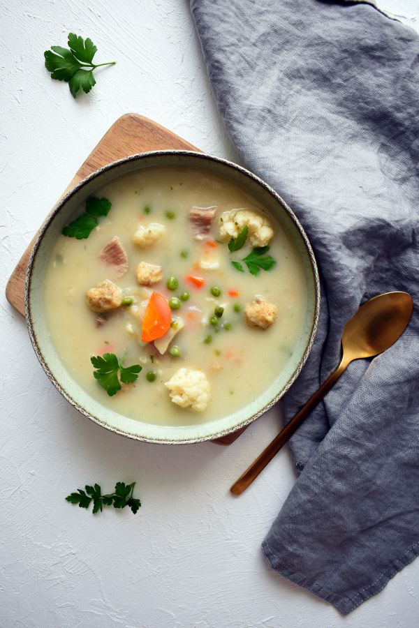 A nyírségi gombócleves egy igazi magyar klasszikus, amely méltatlanul ritkán kerül az asztalra. Pedig ez az étel sokkal több, mint egy egyszerű leves, szinte főételként is megállja a helyét. Neked való, ha szereted a tárkonyos ragulevest, mert kicsit hasonló ízvilág a tejszínes habarás miatt. Szintén imádni fogod, ha kedveled a tartalmas, hagyományos ízvilágú leveseket. Kövesd a receptemet és készítsd el ezt a finomságot egészségesen!